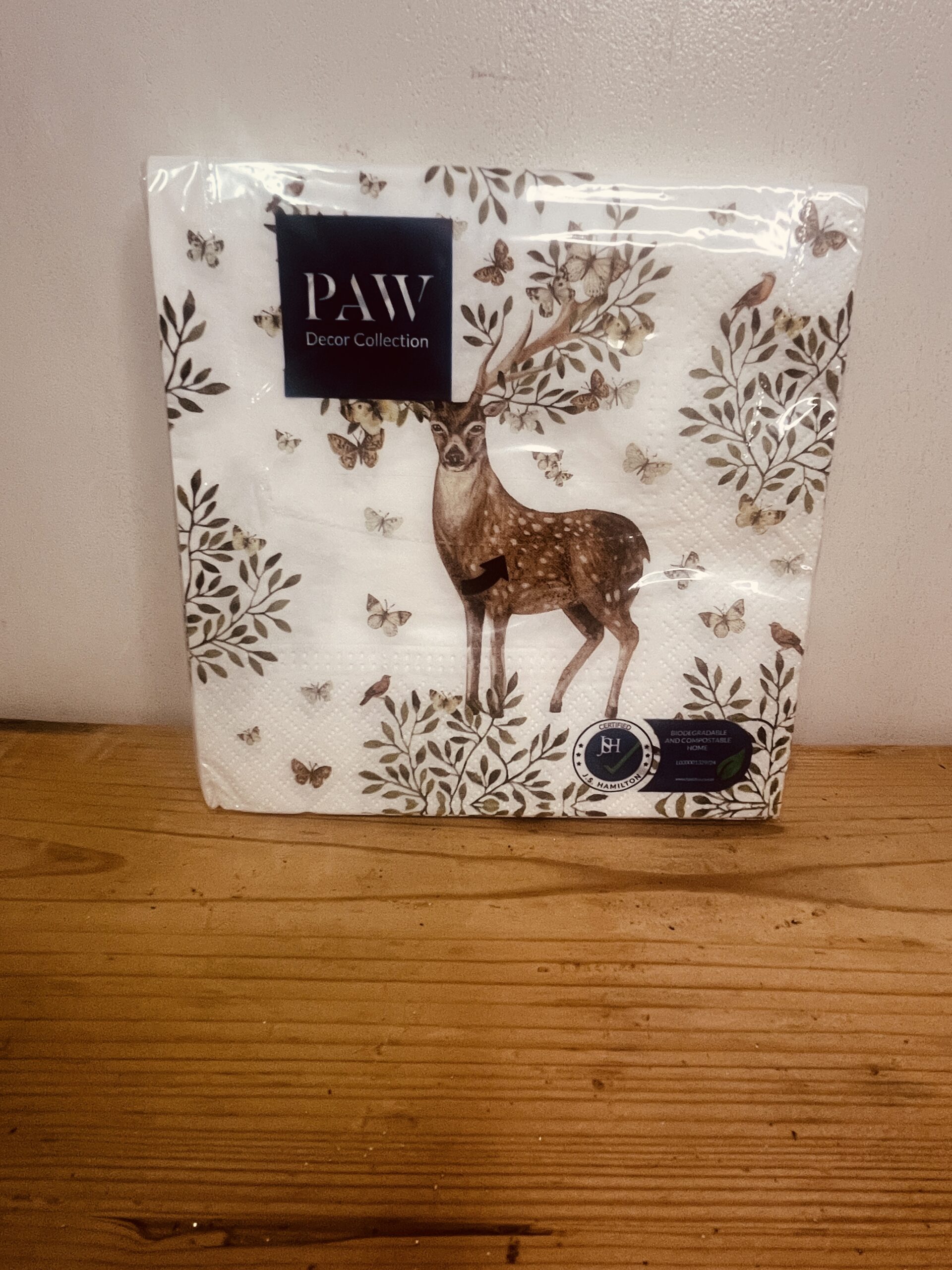Tovaglioli in carta a 3 veli, morbidi al tatto e resistenti all’uso, impreziositi da una raffinata illustrazione di un cervo elegante circondato da rami e farfalle. La palette naturale e delicata rende questo disegno perfetto per creare un’atmosfera accogliente, armoniosa e raffinata sulla tavola, senza risultare stagionale o tematica.