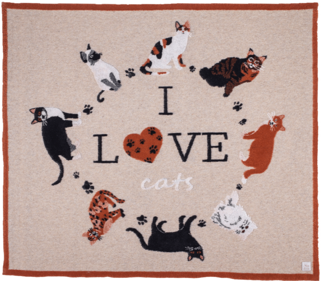Un’esplosione di dolcezza e colore: la coperta “I Love Mix Cats” dei Nastri di Mirta raffigura una simpatica collezione di gatti, ognuno con la sua personalità.