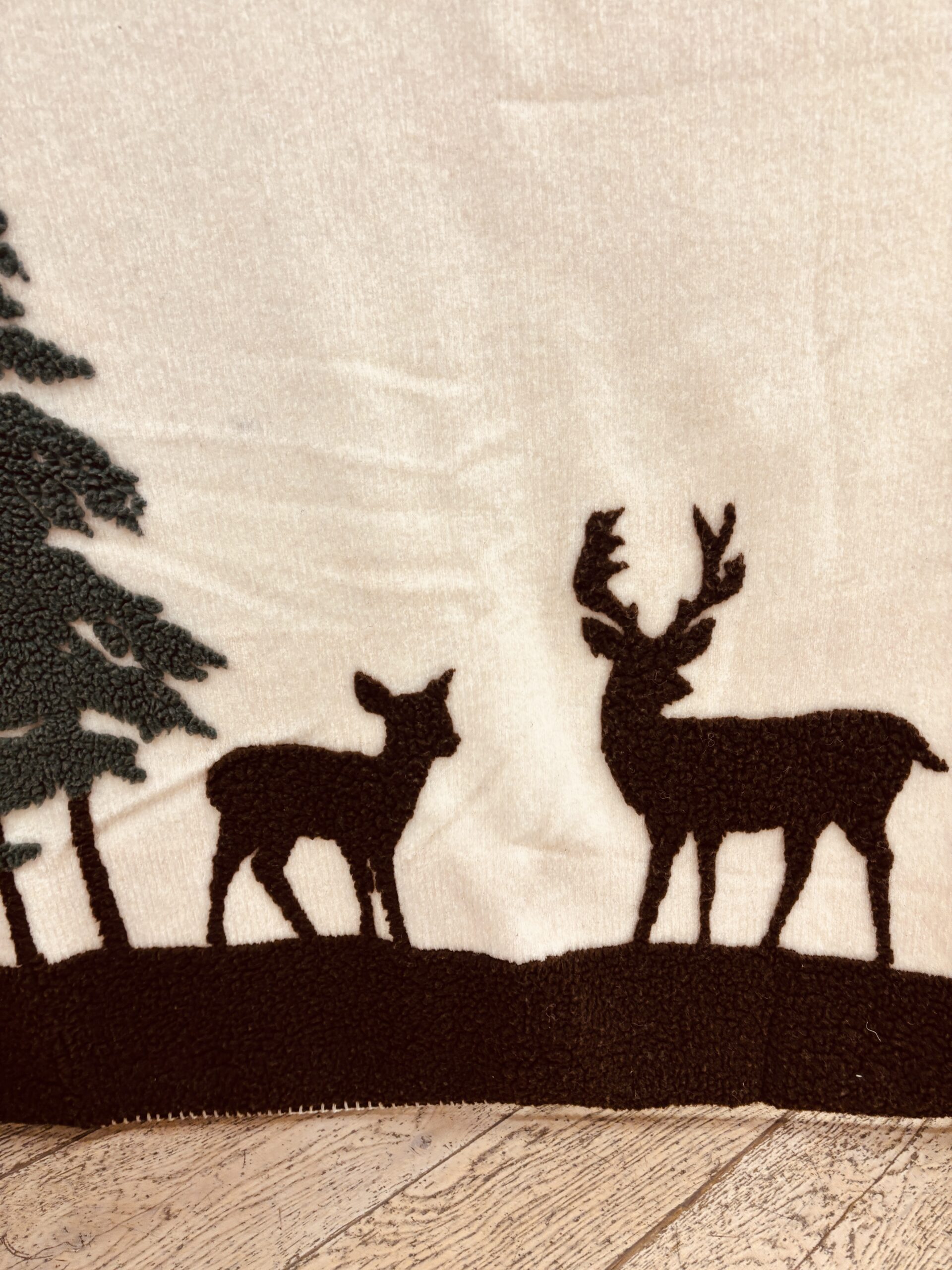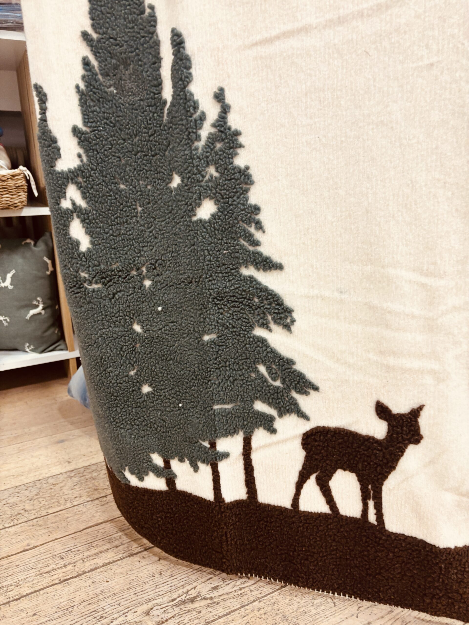 La fantasia montana — con abete in rilievo bouclé su fondo avorio — dona un tocco naturale e raffinato, ideale per chalet, case di montagna, ambienti rustic chic o per chi ama decorare la casa con elementi caldi e accoglienti.