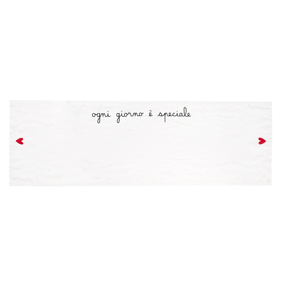 Tessuto colore bianco candido, abbinato alla stampa del nostro meraviglioso acquerello Ogni giorno è speciale