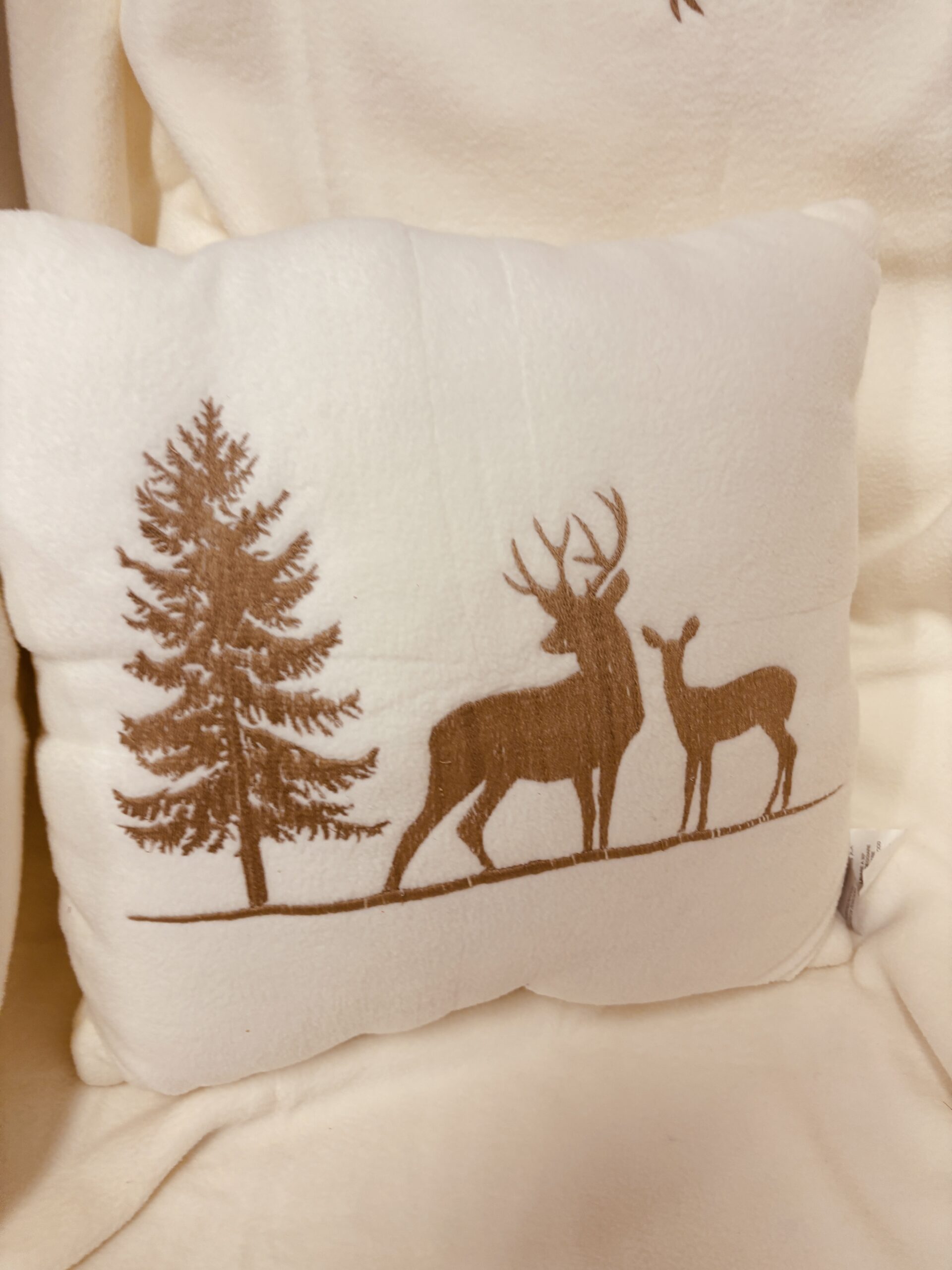 – Decorazione: Jacquard abete + cervi coordinato alla coperta