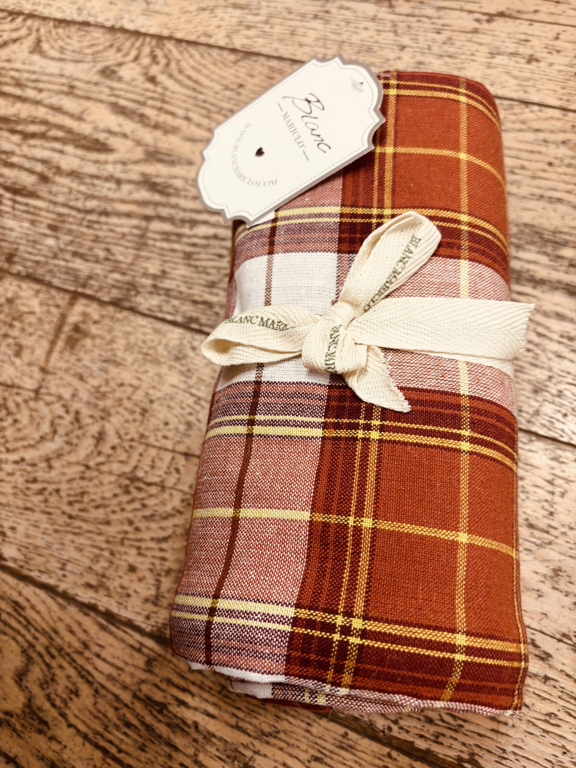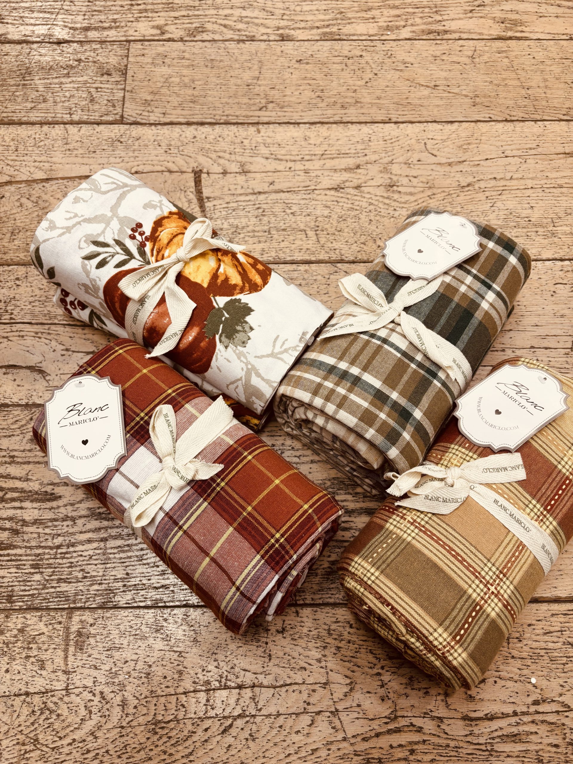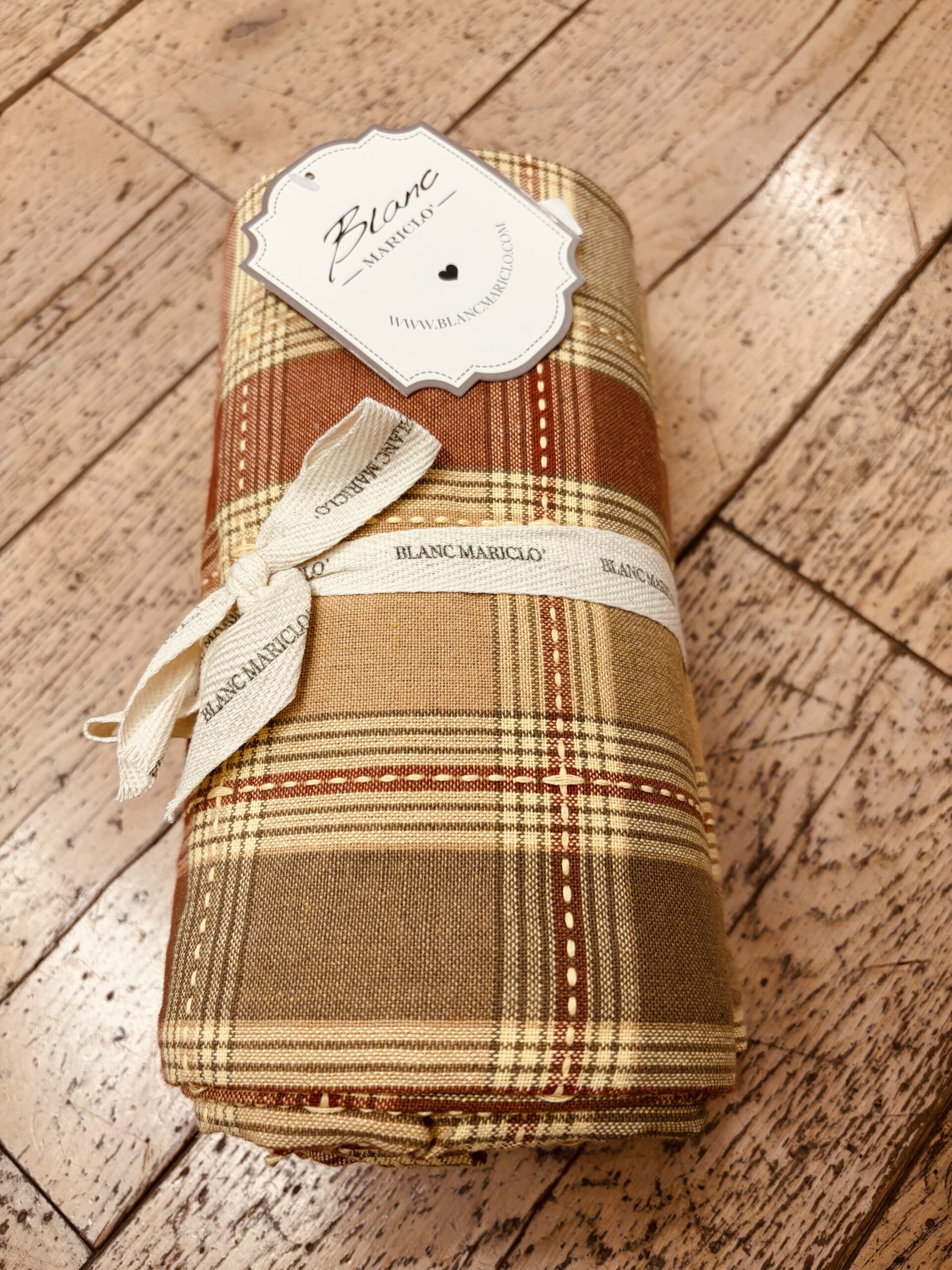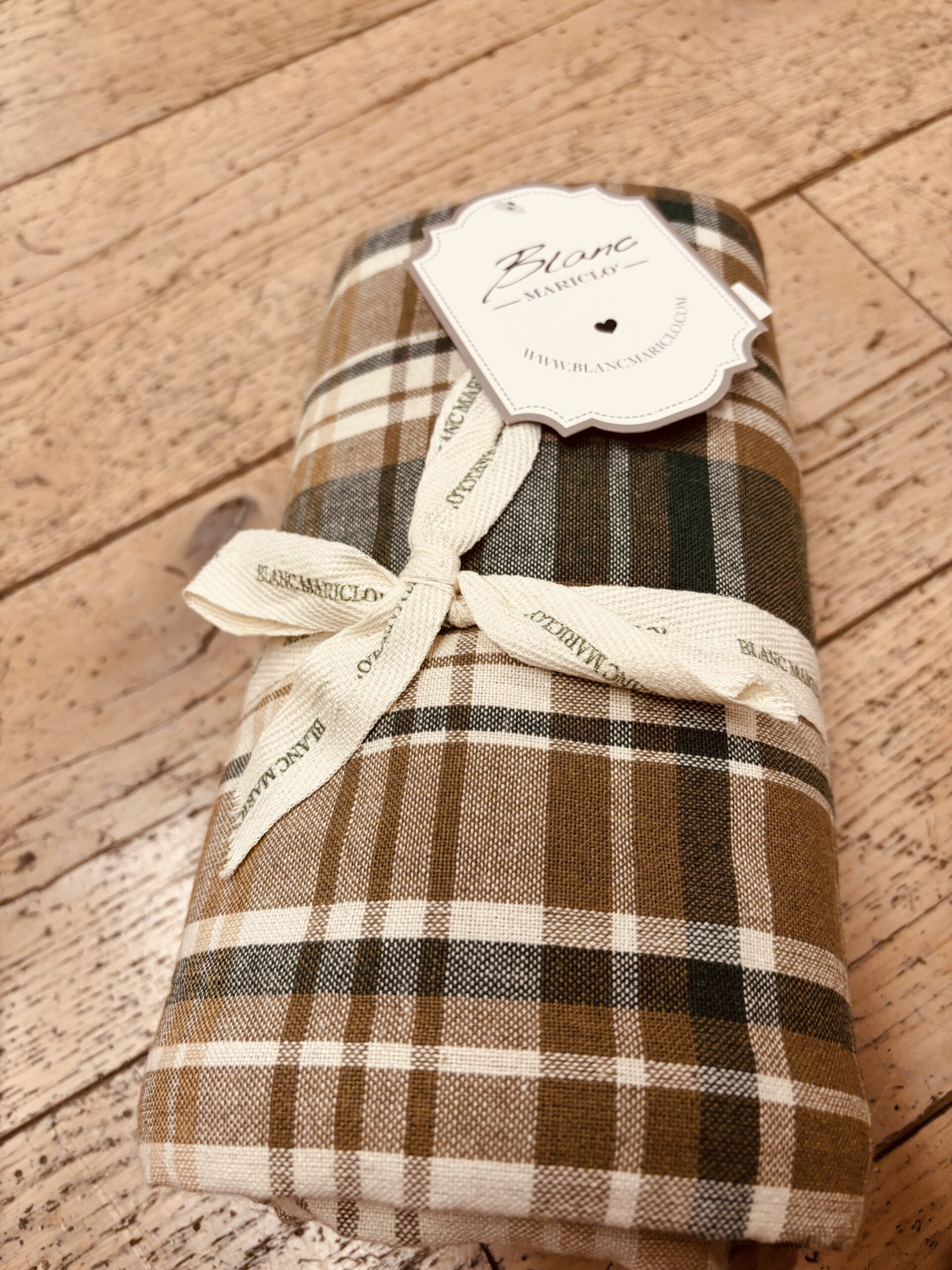 Queste splendide tovaglie firmate Blanc MariClò uniscono qualità tessile e stile inconfondibile, perfette per valorizzare la tavola in ogni stagione. Disponibili in diverse fantasie — dai classici quadretti scozzesi nelle tonalità del verde, beige, rosso e senape, fino alla variante autunnale con zucche — portano un tocco caldo, accogliente e ricercato alla tua mise en place.